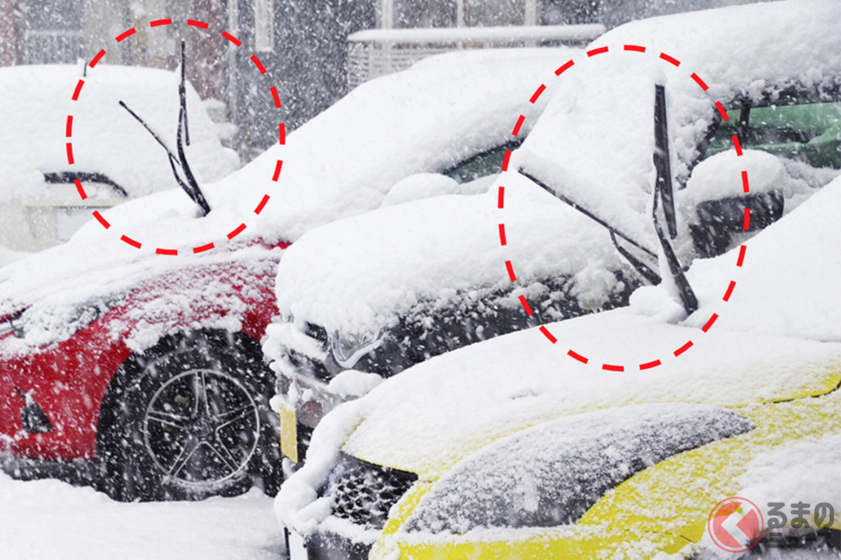冬の光景「ワイパー立て」実はダメだった!? 雪国の“定番対策”思わぬ「破損」リスクにも? 立てないほうが良い理由とは